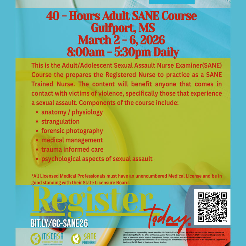 GCCFN is very proud to be the first Family Justice Center in the state of Mississippi—a groundbreaking step forward in supporting survivors of domestic violence, sexual assault, and other forms of interpersonal abuse. As a Family Justice Center, we bring together multiple agencies under one roof, providing coordinated services such as advocacy, legal aid, law enforcement support, counseling, and more. This collaborative, survivor-centered approach reduces barriers to safety and healing, making it easier for individuals and families to access the help they need in one safe, welcoming location.